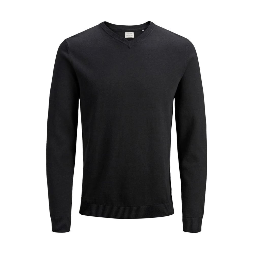 Jack & Jones, Stickade Tröjor , Herr, L, Bomull, Svart Bomull V-ringad Tröja