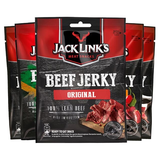 Jack Link’s Beef Jerky Sweet & Hot - Förpackning om 12 (12 x 25 g) – proteinrikt torkat kött från nöt – torkat kött, hög i protein