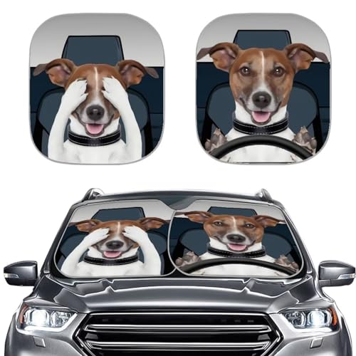 Howilath Rolig djur valp fordon bil solskydd för vindruta kvinnor, Jack Russell terrier hund 2 delar anti-UV värmeisolering biltillbehör solskydd