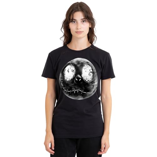 The Nightmare Before Christmas Jack Skellington grå ansikte dam t-shirt, svart, Large, Svart, L
