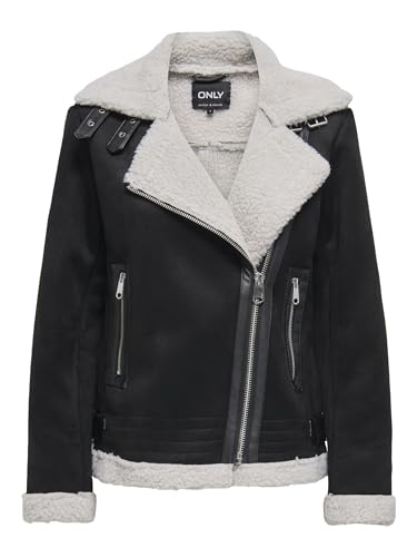 ONLY Onlnewdiana Aviator jacka Cc OTW bikerjacka för kvinnor, Svart/detalj: pumice Stone päls, S