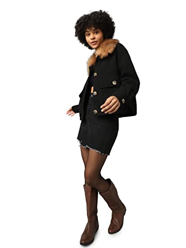 Street One kort jacka för kvinnor med teddy-päls, svart, 42