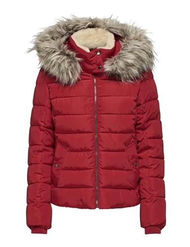 ONLY Onlnewcamilla Fur Hood jacka Cc OTW jacka för kvinnor, Equestrian röd/detalj: naturlig päls, M