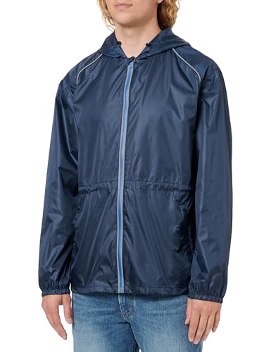 PERLETTI Ogenomtränglig jacka med huva reflekterande detaljer - vindjacka för herr lätt sport löpning vikbar - poncho vattentät snöjacka resor vinter (blå XL), Färg: blå, XL