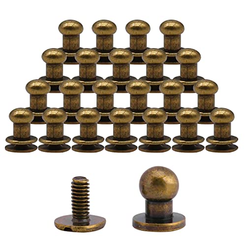CZ Store Runda Mässingsnitar 0,24 x 0,31" ✮LIVSTIDSGARANTERI✮ Brons Skruvknappar, Hals krage Knappar för bälte, Skor, Väska, Byxor, Plånbok, Jacka, Rem -Klassisk Vintage Finish -25Pack