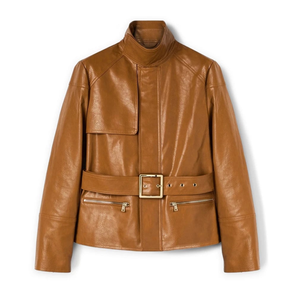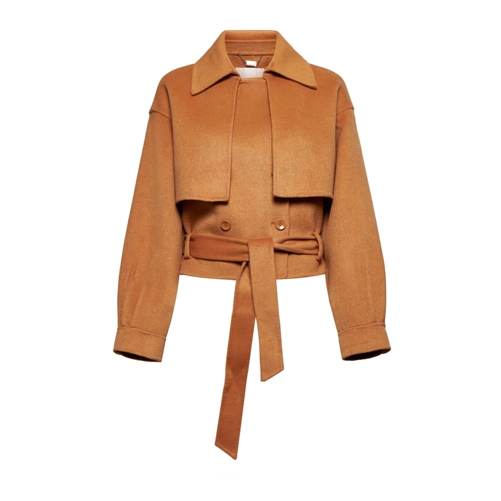 Max Mara, Jackor , Dam, XS, Bomull, Brun vattenavvisande jacka med bälte