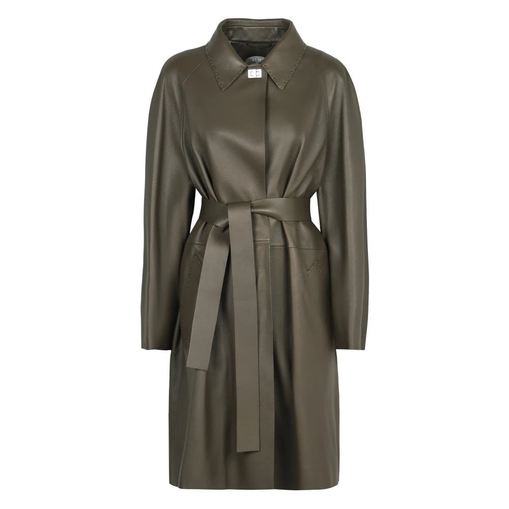 Fendi, Kappor & Rockar , Dam, M, Läder, Lång jacka i hjortskinn med bälte