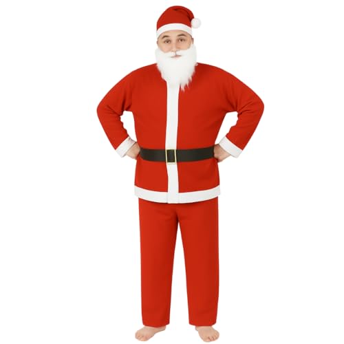 PARENCE. - Jultomtedräkt - komplett kostym med jacka, byxor, bälte, hatt och skägg - röd barnklänning till jul och helgdagar - en storlek passar alla