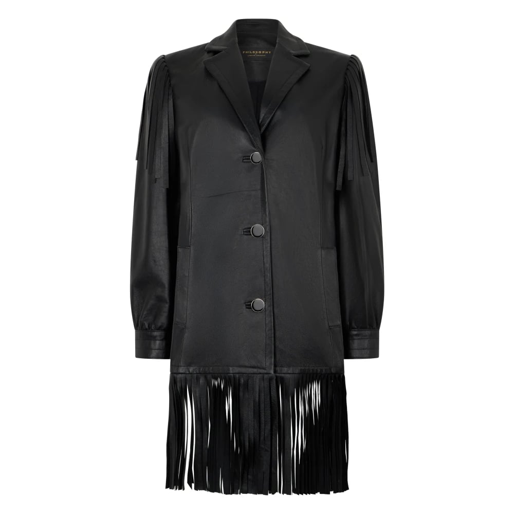 Philosophy di Lorenzo Serafini, Jackor , Dam, L, Polyester, Faux Leather Jacket med Fransar