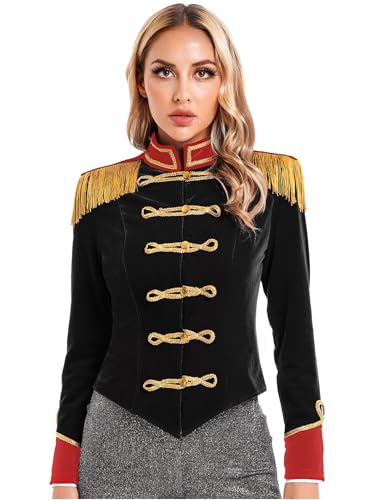 Linjinx Cirkus för kvinnor, jacka, ringmaster, sammet, frack, jacka, fransar, långärmad, cirkusdirektor, jacka, halloween, karneval, kostym, svart, S