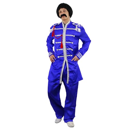 Pop Sergeant-kostym för vuxna – liten – blå jacka med silverfläta och blå byxor – 60-tals musiktema maskeraddräkt