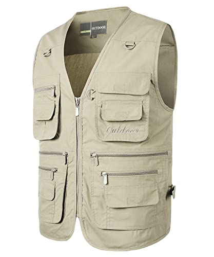 Btmpmcs Herr fiskeväst med flera fickor utomhus snabbtorkande västar safari jakt vandring väst andningsbar fotografi topp ärmlös jacka ytterkläder, B-khaki, 4XL