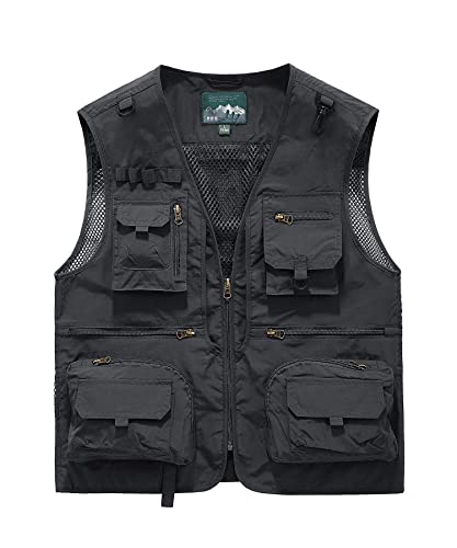 Btmpmcs Herr fiskeväst med flera fickor utomhus snabbtorkande västar safari jakt vandring väst andningsbar fotografi topp ärmlös jacka ytterkläder, A-mörkgrå, L
