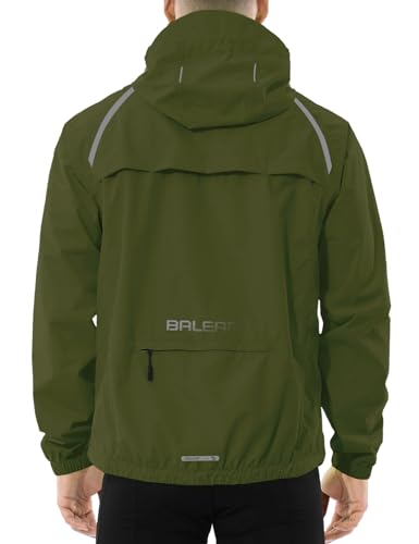 baleaf Vattentät jacka herr cykeljackor reflekterande löpning utomhus regnrockar lätt för män promenader vandring packbar, 10-Armégrön, 3XL