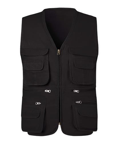 MeiLayM Herr utomhus casual västar snabbtorkande fiskeväst flera fickor verktyg västar safari jakt vandring ärmlös väst jacka andningsbar fotografi topp, Svart, L