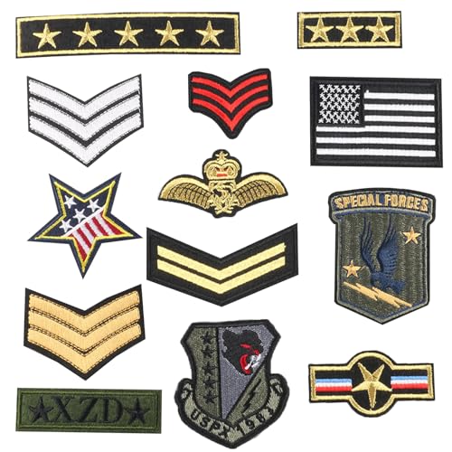 Floatdream 13 stycken tygmärken för strykning, tygmärken för militära fans, lappar att stryka på barn, för sömnad på kläder, jackor, ryggsäckar