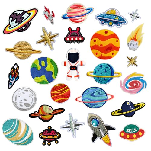 DEARBAG 26 stycken patchar för strykning, rymdastronaut, stryklappar, barn, färgglada lappar att stryka, applikationer för sömnad för gör-det-själv t-shirt, jackor, jeansväskor