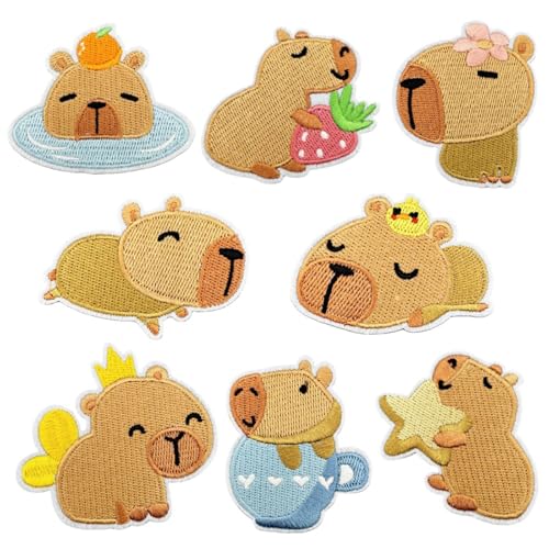 Calkkrer 8 stycken söta capybara vattengris strykorglappar, broderilappar för barn och gör-det-själv-projekt, tecknad dekoration för kläder, jackor, jeans
