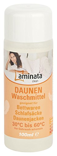 Aminata Clean – Duntvättmedel för sängar, jackor, sovsäckar | 100 ml | flytande rengöringsmedel lämpligt för dun och fjädrar | rengöringsmedel tvättpulver speciellt tvättmedel