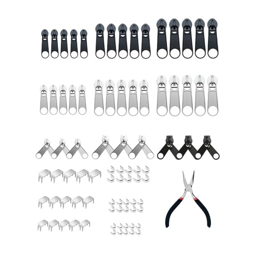Strehknewen Dragkedjereparationsset 85 delar – ersättning dragkedja och reglage för jackor, ryggsäckar, tält, rockar, väskor – inkl. tång och stopp – dragkedjesats i 3 storlekar, universell