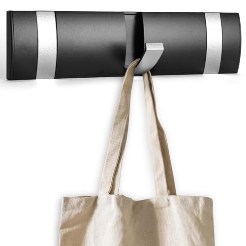 flintronic Väggmonterat flytande rack med 3 krokar, vikbar metallväggkrok, rymd aluminiummaterial klädhängare vägghängare med infällbara krokar för jackor, rockar, hattar, väskor (svart)