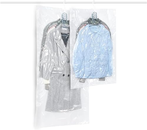 QH7 Hängande förvaringspåsar vakuumpaket för kläder, kappa dammsugepåsar hängande, klänning, rockar eller jackor, garderobsorganisatör, 145 x 70 cm och 105 x 70 cm
