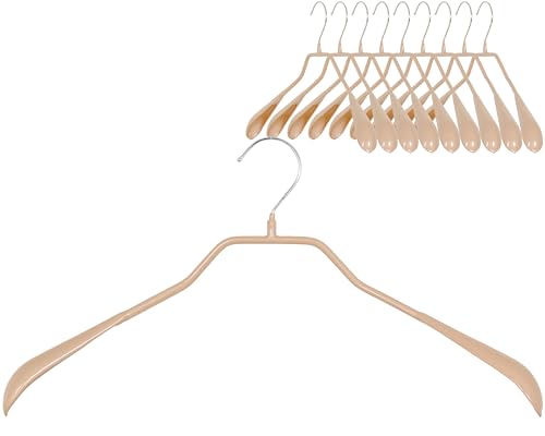 MAWA Klädhängare, 10 stycken, kroppsformade metallgalgar för jackor, rockar, kavaj och jackor, 360° vridbar krok, högkvalitativ halkfri beläggning, 42 cm, latte