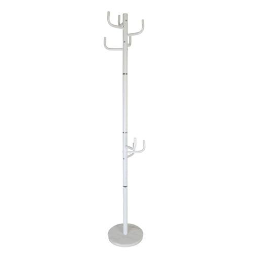 Relaxdays garderobsstativ, med 8 krokar, järnstativ, jackor, rockar, hattar, HBT: 176 x 30 x 30 cm, vit