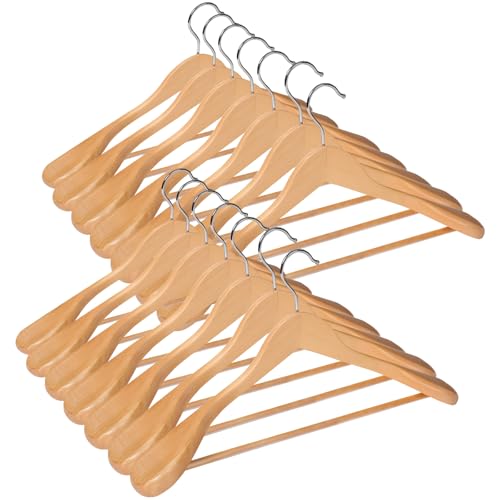 ABHENG Trähängare, set med 14 kostymhängare, 360° roterande krok, halkfri för jackor, skjortor, kostymer, rockar, 44 x 5,5 x 23 cm (L x B x H), Nature AWY0414N