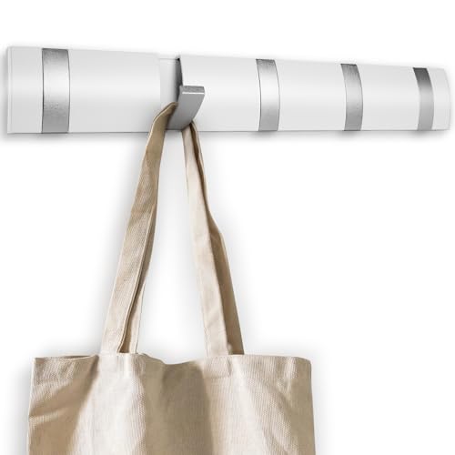 Umbra Flip 5 garderobskrokar – modern, enkel och platsbesparande garderobslist med 5 rörliga krokar för jackor, rockar, halsdukar, handväskor och mer, svart