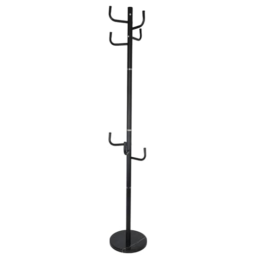 Relaxdays garderobsställ, med 8 krokar, järnstativ, jackor, rockar, hattar, HBT: 176 x 30 x 30 cm, svart