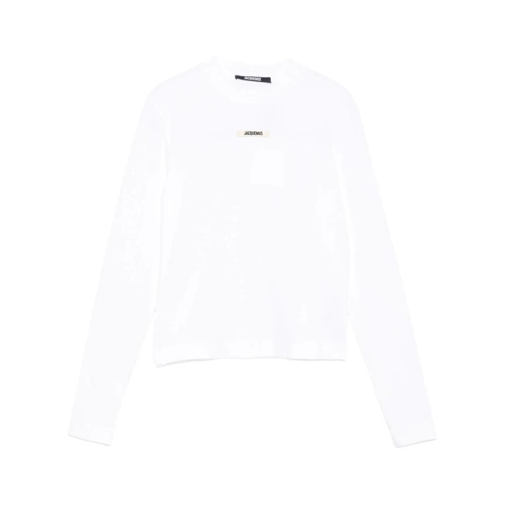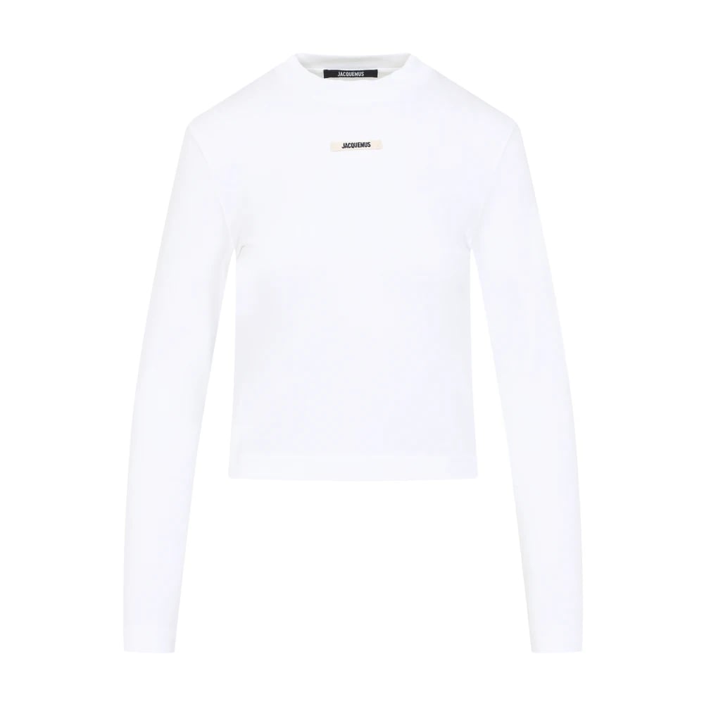 Jacquemus, Toppar , Dam, S, Vit Långärmad Logo Patch T-shirt