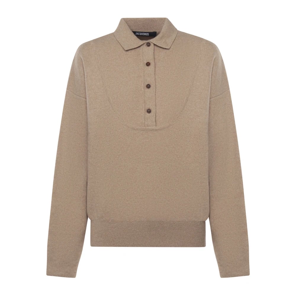 Jacquemus, Stickade Tröjor , Dam, XS, Kashmir, Beige Cashmere Sweater Ribbed Collar