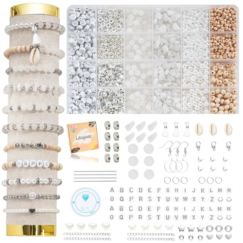 Leuyuee silverpärlor för armband naturlig Amazonit ädelsten pärlor set för att trä på kit pärlset pärlor för gör-det-själv armband gör själv smycken halsband örhängen kedja (CZ006-vit jade)
