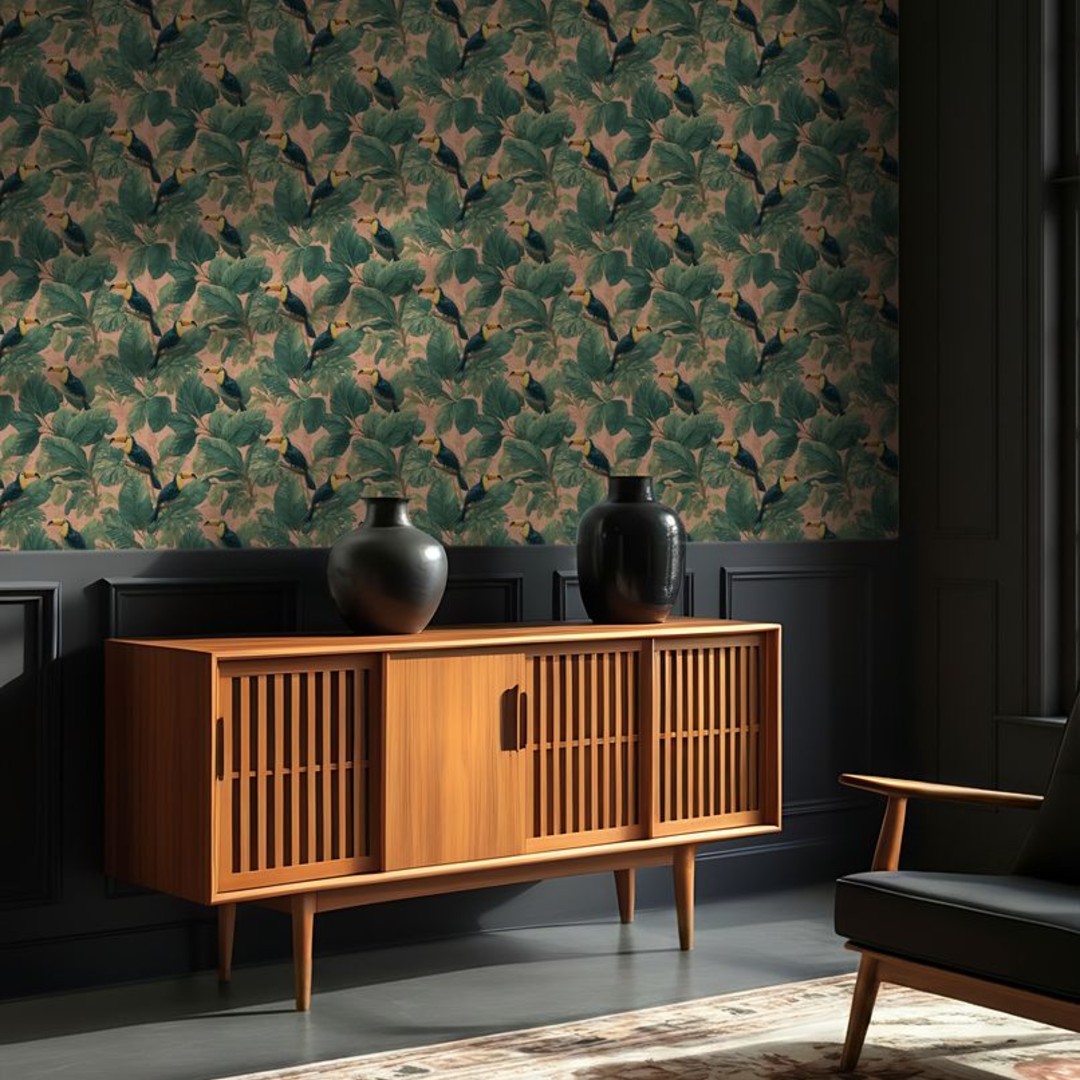 Jaipur Brown - Tapet - Brun - Kök - Fåglar - Blue Monkey - Non-Woven