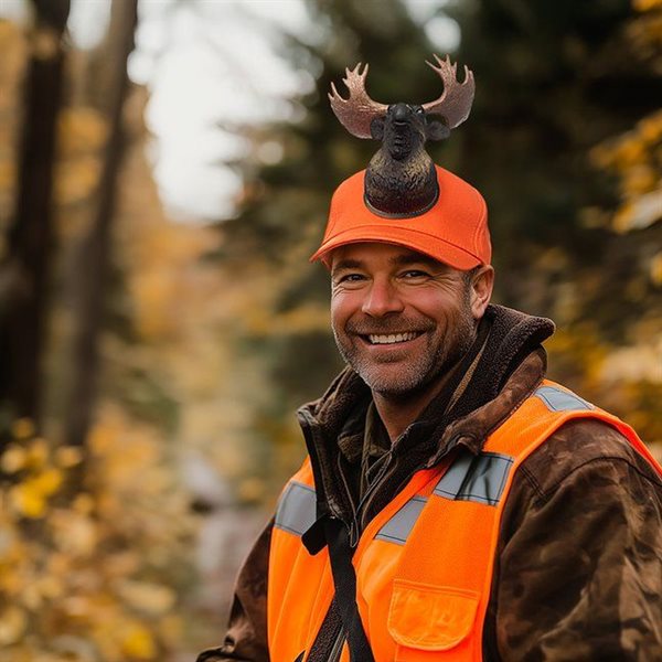 Keps med älg - orange / keps med djurmotiv / keps 3D figur / rolig keps jakt och festival