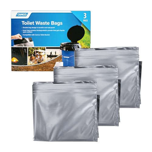 Camco toalettavfallspåsar – hållbar design med dubbla påsar som är läckagesäker – den inre påsen gör all vätska till gelé – perfekt för camping, vandring och jakt med mera – 3-pack (41547)