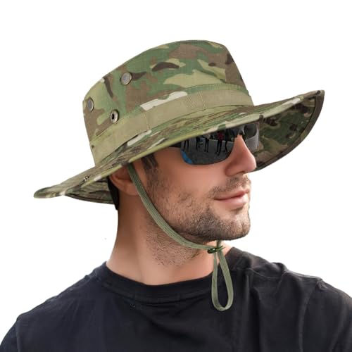 DiULi Camo Boonie hatt för män kvinnor, UPF 50+ unisex rik kamouflage buske hink hatt buske djungel brett brätte armé militär solkeps djungel hatt för utomhus fiske jakt safari strand, Cp kamouflage
