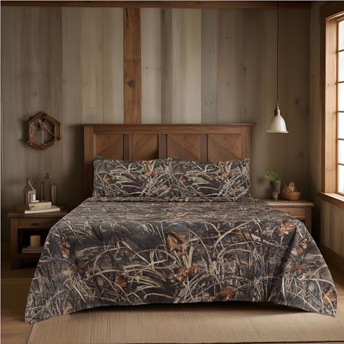 Boston Linen Company Realtree Max 4 Camo sängkläder tvillinglakanset i 3 delar polybomull, rustikt bondgårdssängkläder för stuga, stuga och jakt sängset – perfekt för kamouflagetema sovrum – (99 x 190