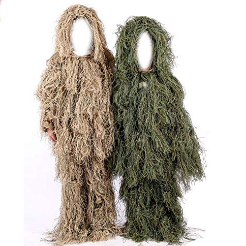 Beler Ghillie-dräkt för barn, män, 5-delad 3D-kamouflagedräkt, jaktkläder, kamouflagedräkt för jakt, skogs- och taktiska insatser, kamouflageset med jacka, byxor, huvud (skogsgrön, S)