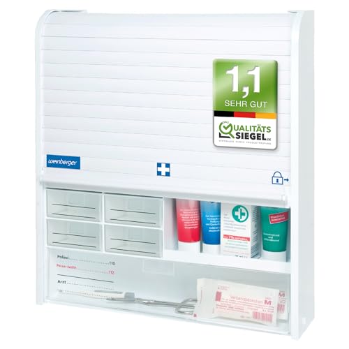 WEINBERGER Jalousie Medizinschrank mit Kindersicherung für Hausapotheke mit 14 Schubfächern, Kunststoff Weiss, Medikamentenschrank, Arzneischrank, 48 x 42 x 10 cm HxBxT, Modell: 06806