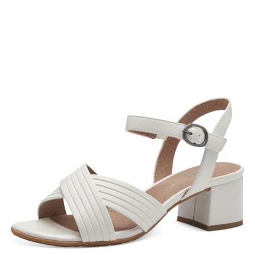Jana Dam Softline 8-28366-42 107 vit uni klacksandaler bekväm mångsidig vardagssko festlig elegant sandal med klack, 37 EU bred, Vit Uni, 37 EU Weit