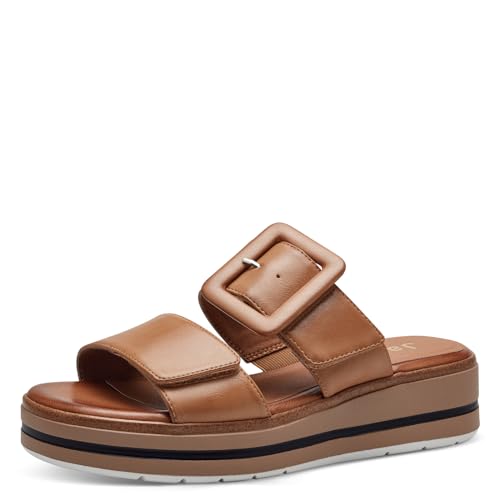 Jana Dam Softline 8-28361-42 300 TAN platt bekväm multibredd vardagssko festlig elegant sandal med klack, 37 EU bred, SOLBRÄNNA, 37 EU Weit