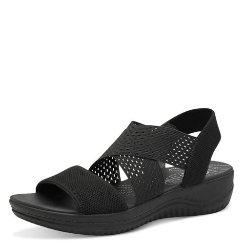 Jana Dam Softline 8-28260-42 001 svart platt sandal bekväm mångsidig vardagssko festlig elegant kilsandaler, 37 EU bred, svart, 37 EU Weit