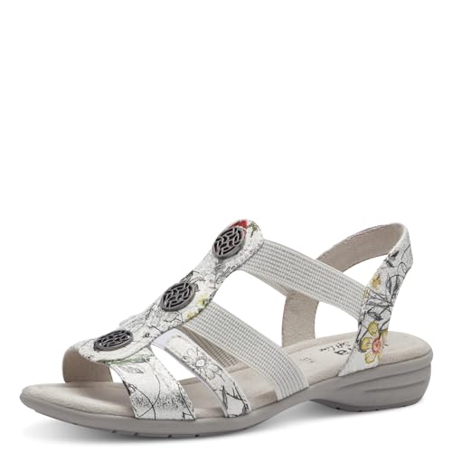 Jana Dam Softline 8-28165-42 149 vit/blomma bekväm multibredd vardagssko festlig elegant platt sandal, Vit blomma, 38 EU Weit