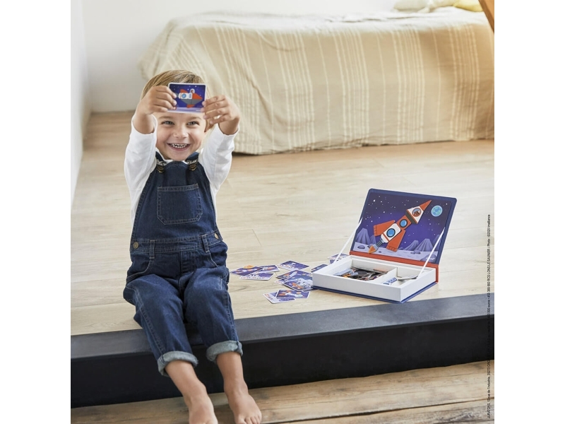 Janod - Magneti'Book Universe - 70 - Part Educational Magnetic Game Teaches Fine Motor Skills and Imagination - Suitable for Ages 3 and Up, J02589