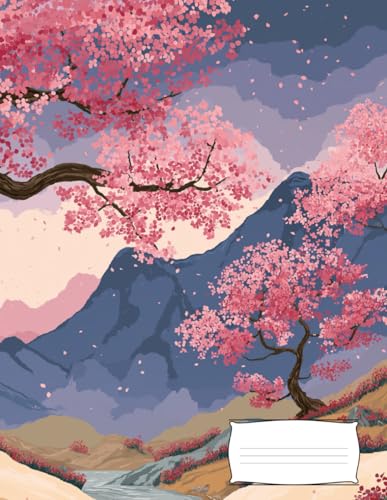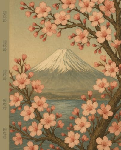 Japanese Notebook with Fuji & Cherry Blossom | Aesthetic Lined Journal for Writing, School, or Daily Notes: A beautiful Japanese-style composition ... and cherry blossoms in a peaceful landscape.