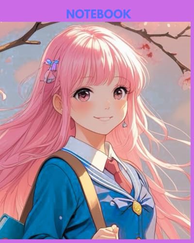 Japanese Anime Pink Hair School Girl with Cherry Blossom Design Soft Cover Ruled Lined Notebook - For Back to School, Gift for Students, and Note-Taking