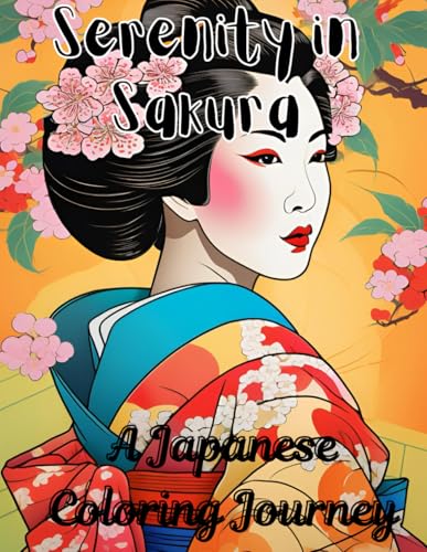 Serenity in Sakura: A Japanese Coloring Journey, Adult Coloring Book, Gift for friends and family, Greyscale images