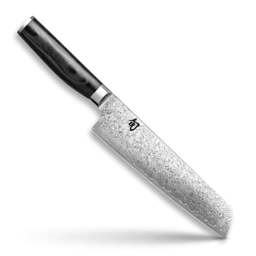 KAI Shun Classic Santoku 18 cm bladlängd – damaskkniv 32 lager VG MAX kärna – 61 (±1) HRC – paketkasträhandtag – tillverkad i Japan – japansk kockkniv smidd kökskniv